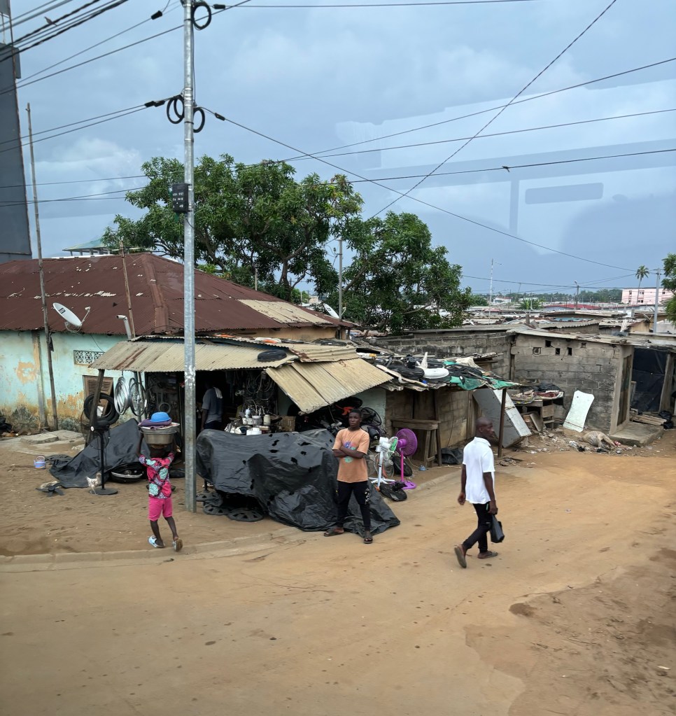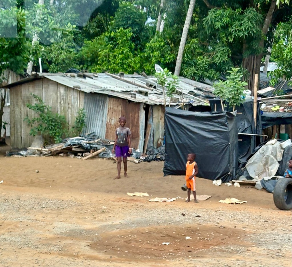 In diesen Blechdachhütten, so gross wie bei uns die Schrebergärten-Häuschen, wohnen auch Leute. Elektrizität, fliessendes Wasser, Toilette —> Fehlanzeige!Wenn es regnet, verwandeln sich die Dorfstrassen in Schlammbäder