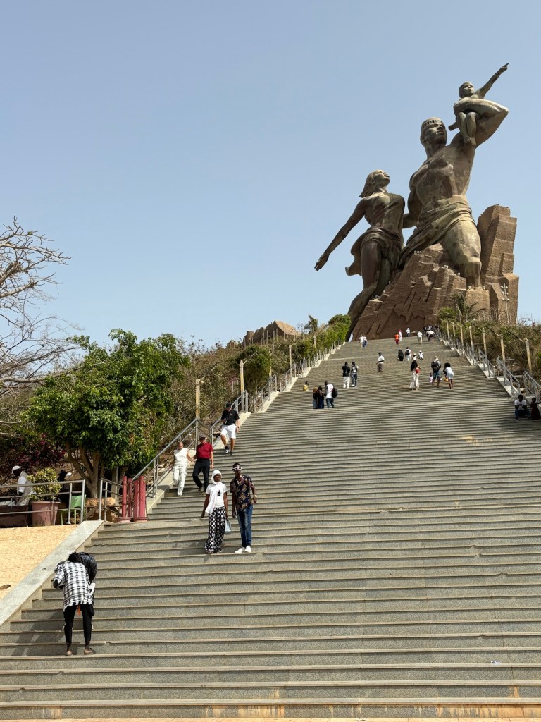 Ein Panoramabild von Dakar. Es wohnen in und um Dakar rund 4 Millionen Leute. Tendenz: Stark steigend.Eine Moschee am Meer. 95% der Bevölkerung sind Moslems.Wir stiegen die 198 Stufen zum “Monument de la Renaissance Africaine” (49 Meter hoch, 2010 erbaut) hinauf.Eine Strassenszene in einer ärmeren GegendDie kleineren Gassen in der Stadt sind naturbelassenAfrikanische Sonntags Idylle Ein Baobab BaumEin “Bolzplatz” für die Fussball-JugendWelche Zukunft erwartet diese Mädchen?