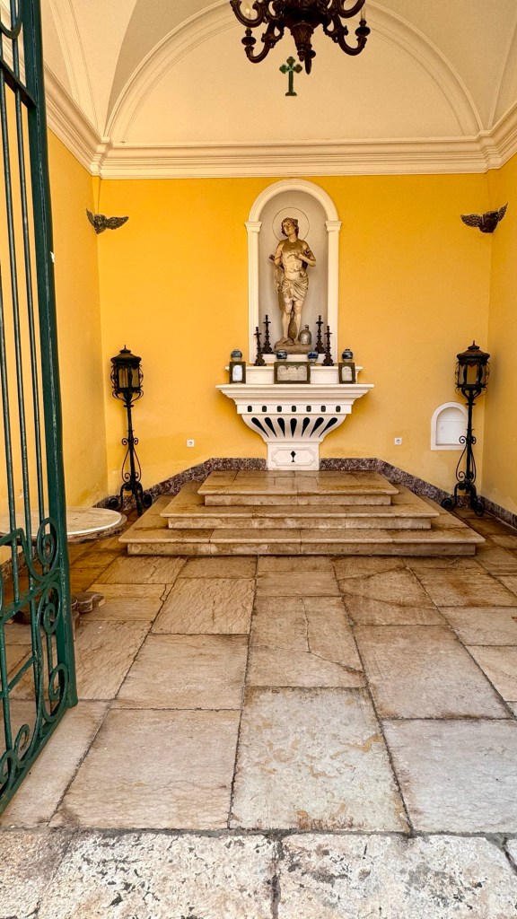 Beim Öffnen sieht man eine rostige Leiter, die in ein dunkles Loch führt. Dort hinunter wurden die renitenten Eingeborenen, die sich z.B. weigerten, 18 Stunden auf den Plantagen für einen Hungerlohn zu ackern, hingebracht. Das Perfide, man kann sich das fast nicht vorstellen, und auch das Erklären fällt mir schwer. Die finsteren Verliesse waren nämlich mittels eines Tunnels mit dem Meer verbunden. Wenn die Leute abends dort eingesperrt wurden, herrschte Ebbe und im Laufe der Nacht, wenn die Flut hereinkam, flutete das Wasser den Raum und alle Insassen ertranken nach und nach in unvorstellbar qualvoller Art und Weise. Am Morgen räumte man die Leichen weg um Platz zu machen für die nächsten am Abend. Gleich neben dem Eingang zum Verliess liegt im Übrigen die Kapelle. Welch eine Schande und das alles im Namen Gottes!