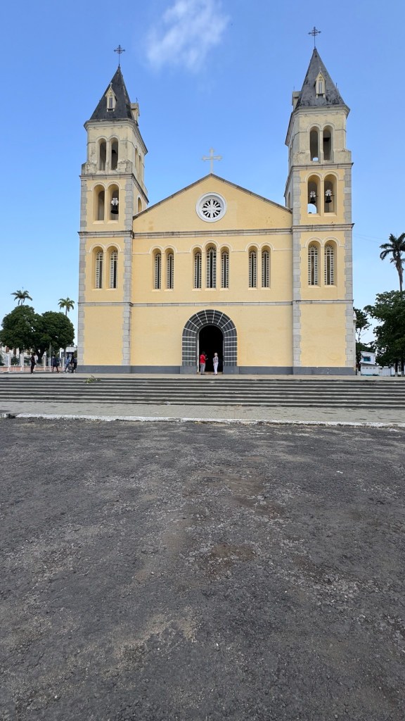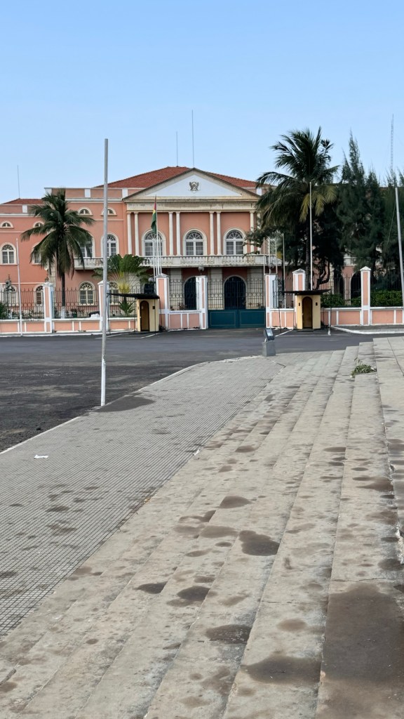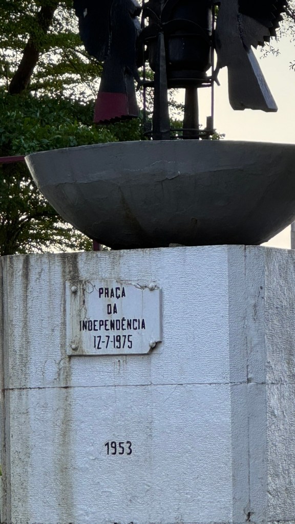 Mitten in der Hauptstadt ein Beispiel eines optisch baufälligen Hauses, das wohl noch Jahrzehnte in dieser Art und Weise bestehen bleibt.Immerhin machte der Präsidentenpalast noch einigermassen gute Figur.Die Statue auf dem Platz der Unabhängigkeit. Sie sind nicht mal in der Lage, eine anständige Beschriftung anzubringen.Von den Portugiesen erbaute Kirche in der Hauptstadt.