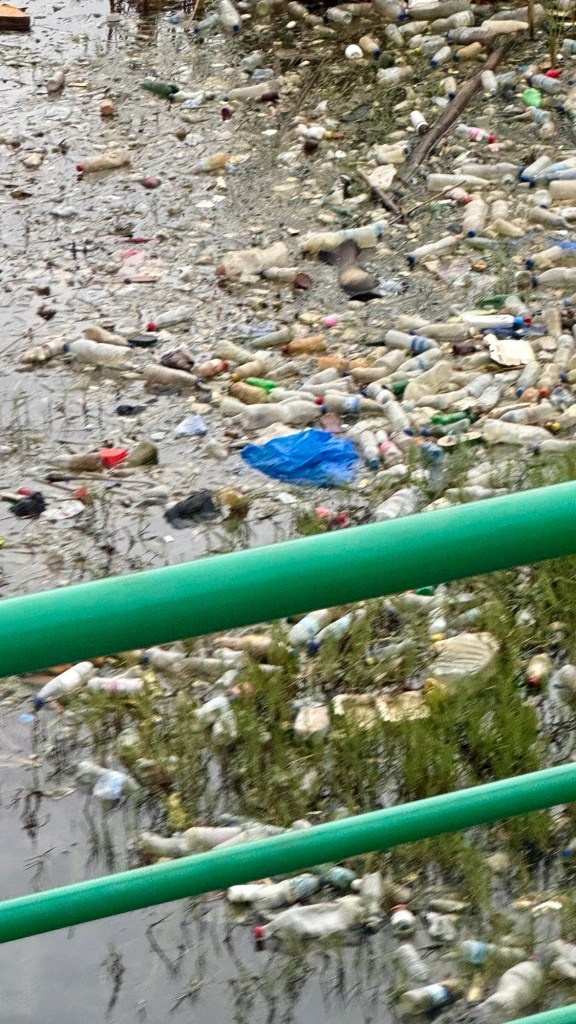 Es war schwül und gewitterhaft bei 32°, eine eher triste Atmosphäre. Genau so war unsere Tour, die uns von Abidjan nach Grand Bassam führte. Dort, wo seinerzeit die französische Kolonialregierung mitsamt allen Europäern residierte. Viel zu sehen ausser alten Kolonialhäusern gab es nicht. Zudem wurde der Regen stärker. Abidjan selbst hat ein sehr grosses Hafengelände und dementsprechend regen Handelsaustausch. Das Stadtzentrum rund um den Regierungssitz und die Ministerien wirkt einigermassen aufgeräumt und gewisse Gebäude entsprechend westlichen Standards. Fährt man hingegen aus der Stadt, reiht sich auf mindestens 5 KM Länge Blechhütte an Blechhütte in mehreren Reihen und offenbaren die dort herrschenden, himmeltraurigen Wohnverhältnisse unter denen die überwiegende Mehrheit der lokalen Bevölkerung leidet. Da unterscheidet sich die Elfenbeinküste nicht von den anderen westafrikanischen Staaten. Abidjan und Umgebung beherbergen rund 2.5 Mio. Menschen. Ein Thema – wahrscheinlich in vielen Teilen Afrikas – ist der Umgang mit (Plastik)-Abfall. Kurz gesagt, die Leute haben einfach kein Sensorium dafür und schmeissen alles auf die Strasse, hinters Haus oder auf Grasflächen. Ebenso Papier und Kartons. Viel schlimmer, auch ins Wasser (siehe Bild nachstehend) was u.A. später als Mikroplastik in der Nahrungskette landet. In den Hafen von Abidjan gelangt man vom offenen Meer via einen ca. 200 M breiten kanalartigen Arm in das grosse Hafenbecken. Somit gibt es in jenem Becken praktisch keine Strömung. Eine solche Menge Unrat im Wasser habe ich denn auch mein ganzes Leben lang noch nie gesehen. Die folgenden Bilder – eher magere Qualität, da aus dem fahrenden Bus aufgenommen – zeigen keine glitzernde – sondern eine eher triste Szenerie.