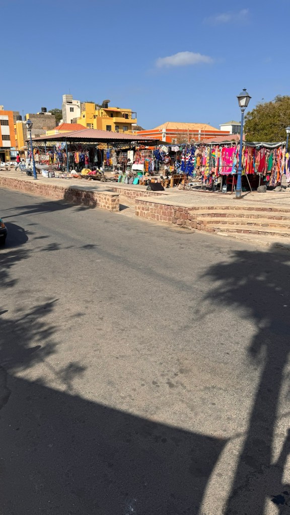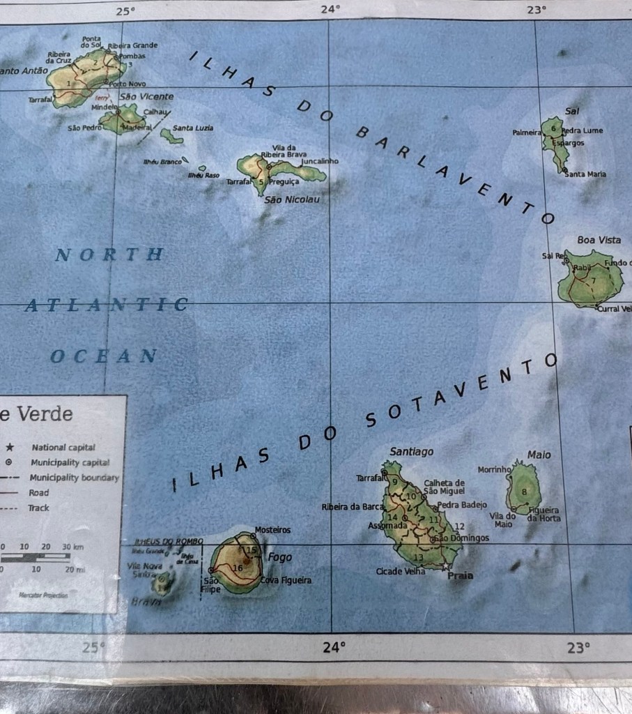 Man spürt es unweigerlich; wir nähern uns Europa. Obschon sich die 7 bewohnten Kapverdischen Inseln zu Afrika zählen, sieht man sofort den Unterschied. In der Hauptstadt Mindelo der Insel Sao Vicente, die wir besuchten, liegt (fast) kein Unrat herum, die Straßen weisen wenig Schlaglöcher auf und die Häuser sehen ordentlich aus. Die Inselgruppe lebt hauptsächlich von Zuwendungen aus der Diaspora und vom Tourismus. Letzterer findet jedoch nicht primär auf der Insel statt, die wir besuchten, sondern auf Boavista und Santiago. Offizielle Amtssprache in Portugiesisch, das Land erlangte 1975 die Eigenständigkeit. Wir erkundeten während 7 Stunden in einer geführten Rundtour, die auch einen einstündigen Fussmarsch auf einem Schotterweg beinhaltete, die gesamte Insel. Das Wetter war wunderbar, teils stahlblauer Himmel, rund 22 – 26° mit steifer Brise aus Nord.