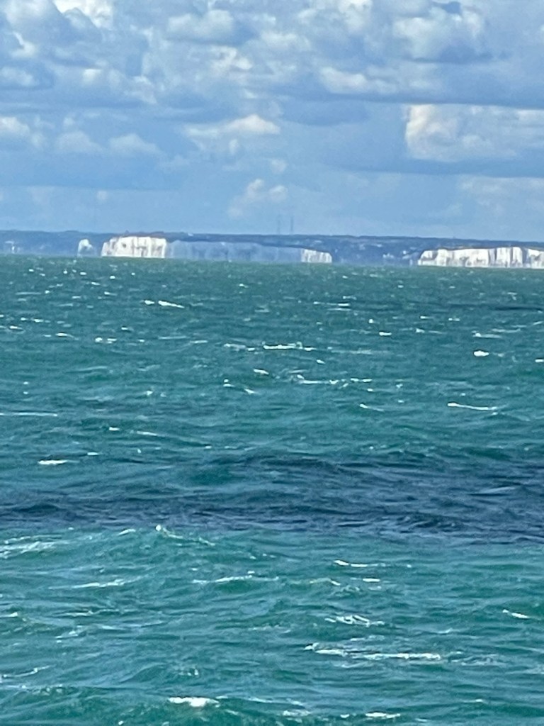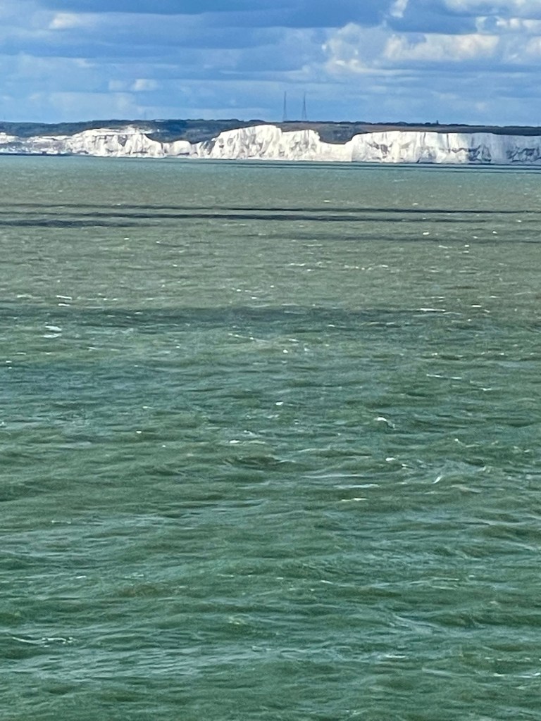 Bei unserer letztjährigen Kurzreise Ende November nach London mit 3-tägiger Kreuzfahrt auf dem English Channel wäre Brügge ebenfalls ein Zielort gewesen (nebst Rotterdam). Bekanntlich fiel die Kreuzfahrt wegen schlechten Wetters und starken Windes buchstäblich ins Wasser. Heute Morgen um 07.15h informierte der Kapitän, dass er entschieden hätte, Brügge (resp. Zeebrügge) nicht anzulaufen. Die Wetterprognosen für heue Nachmittag seien sehr ungünstig. Insbesondere der vorausgesagte, stürmische Wind erschwere eine gesicherte Abfahrt vom Hafen. Es gäbe daher einen weiteren Seetag. Da wir offenbar nicht eher als am Samstagmorgen in Southampton ankommen dürfen, kompensiert unser Schiff die zusätzliche Zeit mit ein paar grossen Schlaufen und sehr langsamem Speed (nicht mehr als 10 Knoten, was in etwa halber Kraft entspricht). So gondeln wir also heute auf dem Channel umher, wo es wie immer relativ viel Schiffsverkehr hat. Je westlicher, desto besser wird das Wetter und der Wind ist nur flau. Nachfolgende ein paar Impressionen der berühmten “cliffs of Dover”.