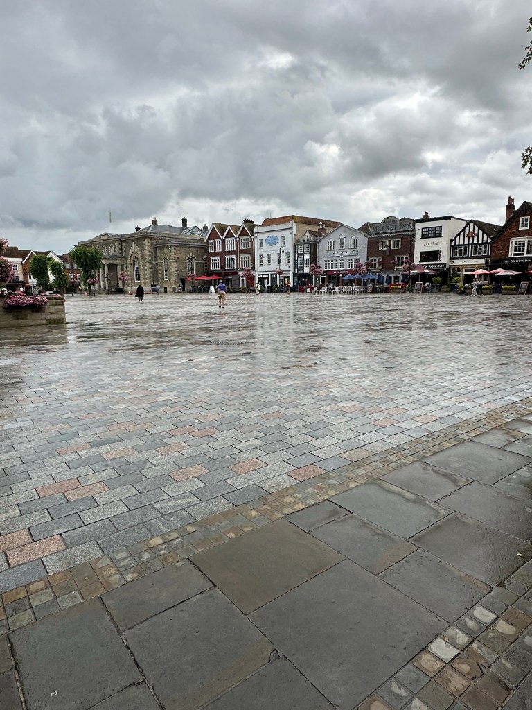 Während es in Kontinental-Europa wettermässig gerade von Hitzewelle zu Hitzewelle geht, ist es in England exakt umgekehrt. Regen und starker, zum Teil stürmischer Wind bei 18° bis 20° beherrschen in den 5 Tagen unseres Aufenthaltes das Geschehen. Der Ausflug am Donnerstag nach Salisbury war diesbezüglich noch einigermassen passabel. Die mehr als 400 Autokilometer am Freitag zum Besuch von Laura in der Nähe von Coventry fanden hingegen unter permanentem, strömendem Regen statt. Am Samstag regnet es fast nicht mehr, dafür stürmt es – für unsere Begriffe – extrem. So pfeift und zischt es in unserem Häuschen durch sämtliche Ritzen verbunden mit dem persistenten, grollenden Getöse des Sturms. Angesichts dessen verzichten wir heute auf den geplanten Ausflug auf die Isle of Wight. Stattdessen besuchen wir am Nachmittag Mike auf ein „cup of tea“. Mike war vor rund 50 Jahren ein Arbeitskollege bei Danzas – Basel. Wir haben den Kontakt in all der Zeit nie verloren und er (und Sally) wohnen nur etwa 45 Autominuten von Southampton entfernt. Morgen Sonntag ist ein Transfer-Tag. Das heisst: Am Morgen Koffer packen, danach den Mietwagen bei Avis zurückgeben, anschliessend per Taxi zum Cruise Terminal fahren, auf dem Schiff einchecken und Koffer wieder auspacken. Nachstehend einige bildliche Impressionen der vergangenen Tage.