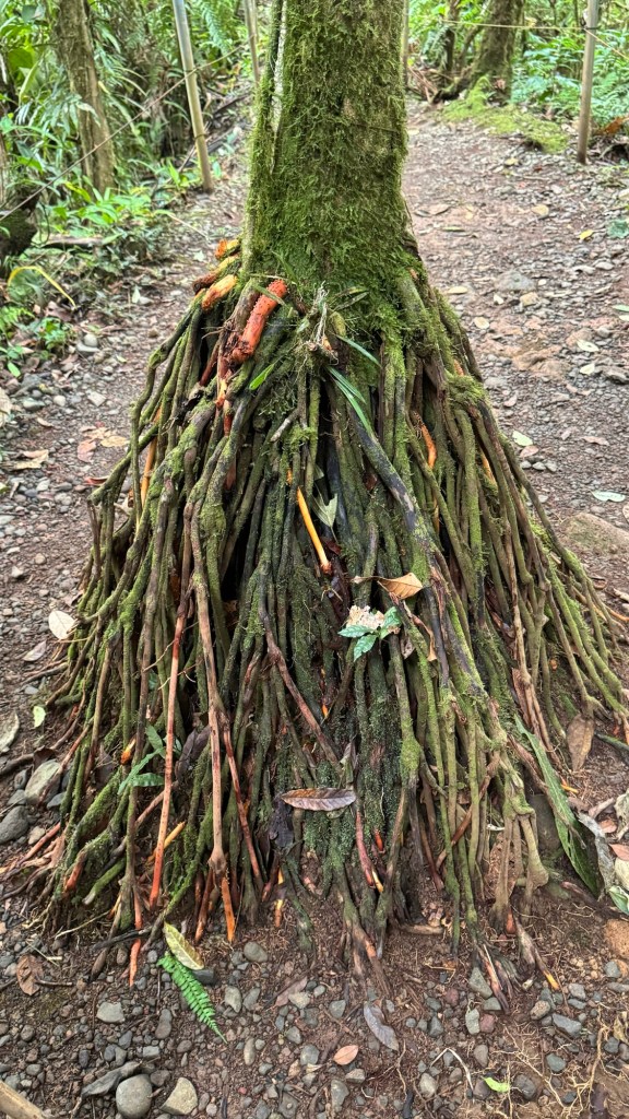 Für heute hatten Ruth und ich zwei unterschiedliche Touren gebucht. Ruth besuchte einen Dschungel-Zoo und ich einen Regenwald mit Hängebrücken. Meine Tour war eher ein Reinfall. Zum einen dauerte die Fahrt auf engen Strassen 3 Stunden (hin und zurück). Ob der vielen Kurven und „ups and downs“ wurde mir auf der Hinfahrt übel und elend. Am Ort auf rund 1‘000 M.ü.M. war die geführte Wanderung in etwa lediglich 30 Minuten absolviert bei ca. 1 1/2 KM Wegstrecke. Für die meisten Mitfahrenden (vielfach übergewichtig) war das weitaus genug; ihnen lief der Schweiss von der Stirn; mich hingegen fröstelte es eher. Das Wetter oben in den Bergen Costa-Ricas war dunstig/neblig bei etwa 23°. Man traversierte 3 bis 4 kleinere Hängebrücken und der Guide erklärte vieles über die üppige Fauna und Flora. Danach folgte ein „maues“ Mittagessen. Alles wieder zurück ca. 1‘000 Höhenmeter runter mit obligatem Stopp bei einem riesigen Souvenir-Shop. Costa Rica ist, weil vulkanischen Ursprungs, extrem hügelig, die höchste Erhebung mündet auf knapp über 3‘000 M.ü.M. Ab Höhe 700 M. wird Kaffee (Arabica) in grossen Mengen angebaut welcher das Hauptexportprodukt dieses Landes darstellt.