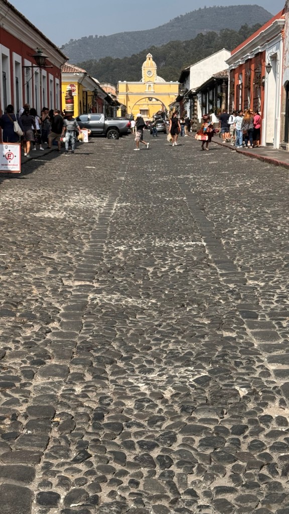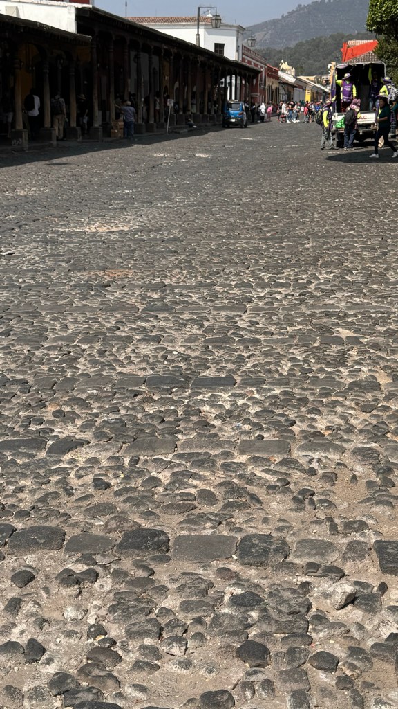 Vieles kann ich heute nicht über Guatemala berichten. Wir fuhren insgesamt 3 Stunden mit dem Bus hinauf nach Antigua, die frühere Hauptstadt. Sie liegt auf 1‘545 M.ü.M. und es leben etwa 50‘000 Leute dort. Das Besondere daran ist, dass keine neuen Häuser gebaut werden und die Bestehenden stets möglichst erhalten, renoviert und aussen neu gestrichen werden müssen. Somit taucht man ab in eine Stadt mit fast unverändertem Flair von vor mehr als 100 Jahren. Die nachfolgenden Bilder stammen alle von dort. Antigua ist ein Weltkulturerbe.