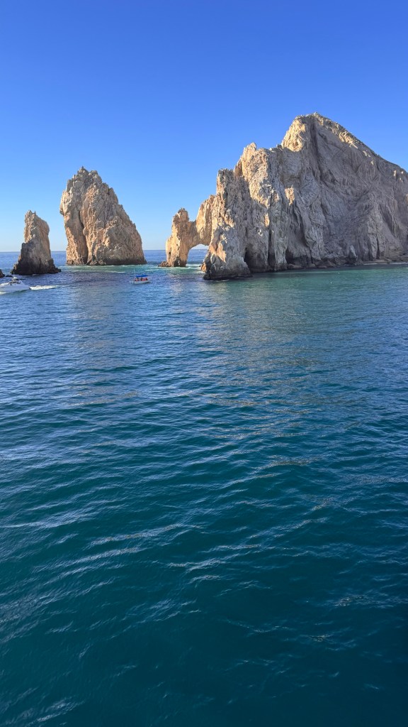Die im Pazifik liegende, mexikanische Halbinsel erstreckt sich von der Grenze zur USA (Kalifornien) über 1‘200 KM südwärts. Cabo San Lucas liegt am südlichsten Punkt der „Baja California“ genannten Landzunge. Es handelt sich um ein breit entwickeltes, riesiges touristisch erschlossenes Gebiet. Es ähnelt stark der Kanaren-Insel Teneriffa. Hier in San Lucas gibt es von Sandstränden über Wassersport jeglichen Couleurs alles, was das Touristenherz begehrt. Und bei solch Kaiserwetter, wirkt das Ganze noch bombastischer.