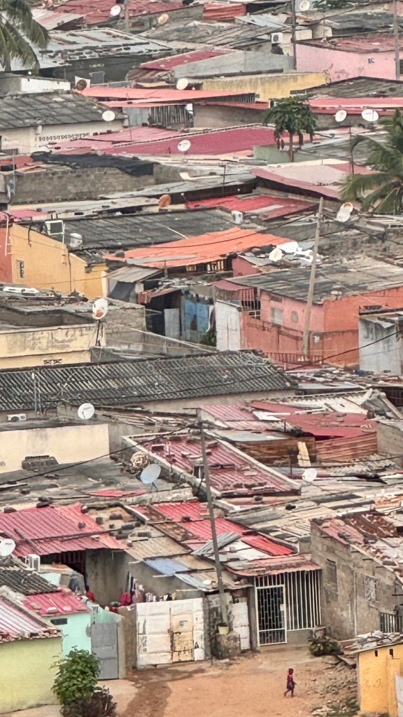 Schwierig genug, etwas Erhellendes unseres Kurzaufenthaltes in der Hauptstadt Angolas zu finden. Viel zu bieten hatte sie nämlich nicht. Wir fuhren zu einem Fort, das die Portugiesen seinerzeit gebaut hatten. Es beherbergt heute ein Museum, das die diversen militärischen Geräte und Waffen sowie – dargestellt in heroischer Art und Weise – die damaligen Kommandanten, teils als Bronzefiguren, teils aus Stein gehauen, zeigt, die für den Kampf zugunsten der Unabhängigkeit im Einsatz waren. Danach fuhren wir zu einem Strand, vorbei an unbeschreiblich armseligen „Bidonvilles“. Innerhalb dieses „Beach Clubs“, wo vielleicht nur 2% der lokalen Bevölkerung Zugang haben (weil sich 98% den Eintritt nicht zu leisten vermögten), konnte man in einem Pool oder im Meer baden und „sünnele“. Danach ging’s wieder zurück zum Hafen und das war‘s. Zumindest eine gute Tat konnte ich heute vollbringen, indem ich einem Strassenjungen, der mit Schuhputzutensilien auf Kundschaft wartete, meine in Auckland gekauften Flossen samt Taucherbrille schenkte. Ich brauche sie nicht mehr.