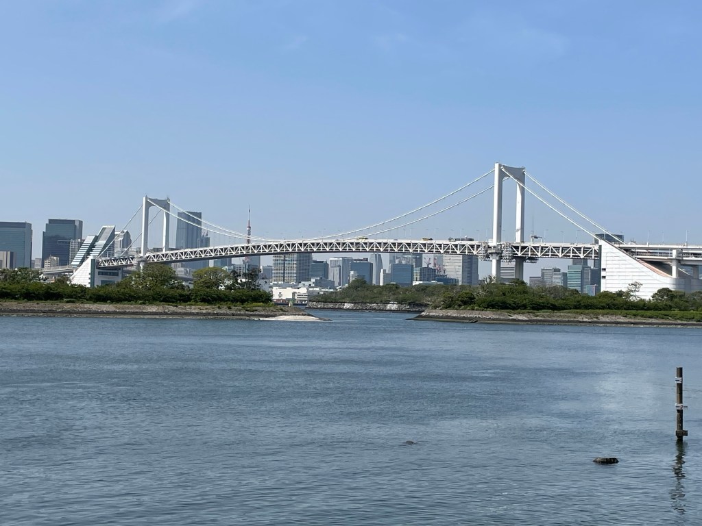 Nach einem letzten Blick zur Rainbow-Bridge fahren wir mit dem Shuttle-Bus zum Haneda-Flughafen.