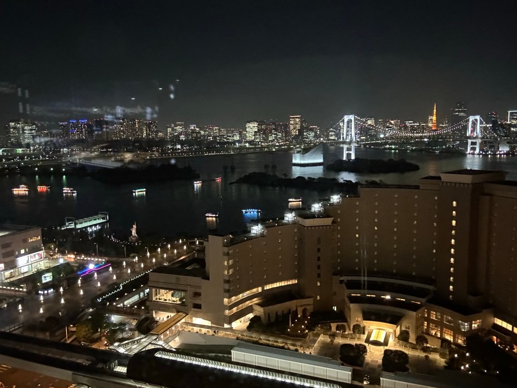 Tokyo ist eine gigantische Stadt. Ja, es ist die Grösste, in der wir je waren (ca. 37 Mio. Menschen leben im Ballungsraum —> Wahnsinn). Überall hat es Menschen, Menschen, Menschen. Auch die legendäre “Druggede” in der Metro erlebten wir bereits am ersten Tag hautnah. Aber alles läuft sehr diszipliniert; Egoismus mag hier ein rares Fremdwort sein. Etwa 80% der Leute laufen – ob drinnen oder draussen – noch mit Maske umher. Seit Tagen leide ich unter einer hartnäckigen Stirnhöhlen-Enzündung; mein Kopf brummt wie ein Bienennest. Deshalb sind wir relativ früh wieder zurück im Hotel. Linderung verschafft u. A. der grossartige Ausblick aus dem 23. Stock auf einen Teil der nächtlichen Skyline.