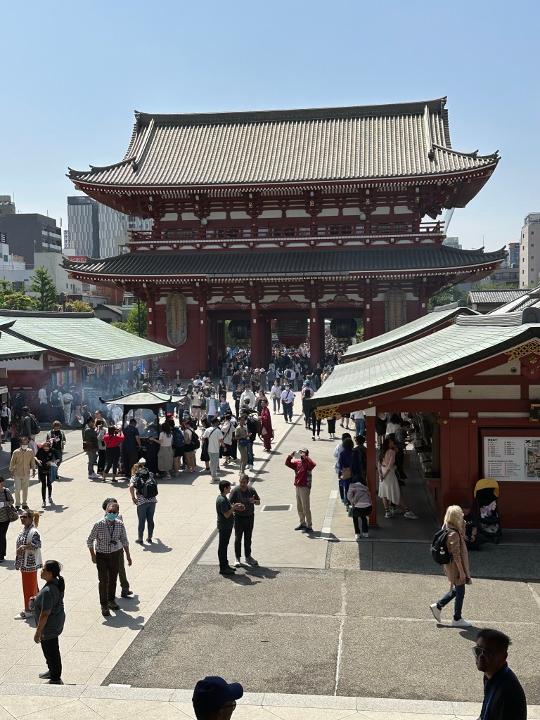 Ein weiterer Frühsommertag erwartet uns am Donnerstag. Wir fahren zum Asakura-Schrein der eine wichtige Kulturstätte darstellt. Dabei erleben wir einmal mehr “hautnah”, wie es sich – eingepfercht wie in einer Sardinenbüchse – am Rande der morgendlichen “rush hour” in der Metro anfühlt. Es sind – oh Wunder – schon sehr viele Leute beim Schrein (die nachfolgenden Fotos vermitteln einen anderen Eindruck). Rund herum hat es viele Shops und wir nehme die Gelegenheit wahr, für unsere Enkelkindern etwas ganz typisch Japanisches zu erwerben. Hoffentlich haben sie – resp. ihre Mütter – Freude daran…